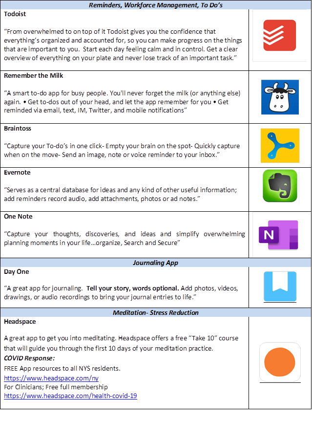Many people are expressing feelings of being overwhelmed during the coronavirus pandemic. You’re not alone. One of the best ways to assist with this is list-making (organizing), journaling, and mindfulness. Below you will find some great apps for this. There are many more apps available, the key is finding one that works for you.